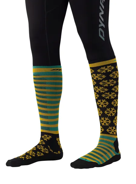 Skarpety skiturowe Dynafit FT Graphic Socks - atlantic/flag wykonane są w oparciu o funkcjonalną mieszankę materiałową, która podczas zimowego wysiłku zapewni odpowiednie warunki termiczne. Ich cechy powodują, że ryzyko wychłodzenia jest ograniczone. W modelu zastosowano także włókna szybkoschnące. Skarpety zachowują część z naturalnej oddychalności skóry. Ograniczy to nieco przegrzewanie i sprawi, że przez dłuższy czas utrzymasz suchy klimat wokół stóp.