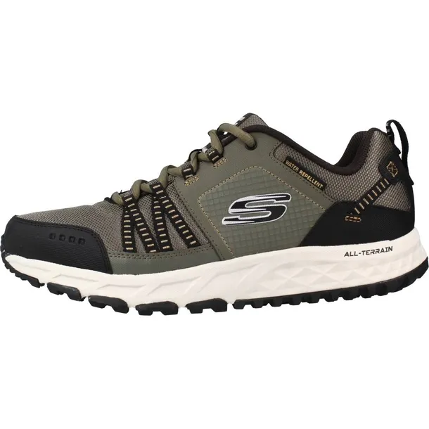 Męskie buty Skechers Escape Plan to idealne połączenie sportowego stylu i lekko amortyzowanego komfortu noszenia. Niska cholewka przed kostkę wykonana została z połączenia skóry licowej i syntetyku, co przemawia za doskonałą jakością obuwia. Zastosowana technologia Water Repellent sprawia, że obuwie to jest wodoodporne i świetnie się sprawdzi podczas jesiennej, deszczowej pogody. Wkładka wewnętrzna zaopatrzona została w system Air Cooled, który zapewnia rewelacyjną cyrkulację powietrza. Dodatkowo, technologia Memory Foam użyta we wkładce odpowiada za idealne dopasowanie do stopy. Podeszwa z systemem drenażu All Terrain odprowadza nadmiar wilgoci z wnętrza buta, a bieżnik zapewnia świetną przyczepność w każdym terenie.