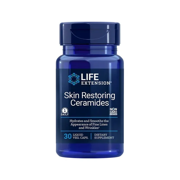 Suplement marki Life Extension zawiera skoncentrowane, przebadane klinicznie ceramidy pszeniczne. Wygładza wygląd drobne zmarszczki. Nawilża i uelastycznia skórę. Podnosi poziom ceramidów w skórze. Dostarcza 350 mg bezglutenowych ceramidów w jednej porcji.