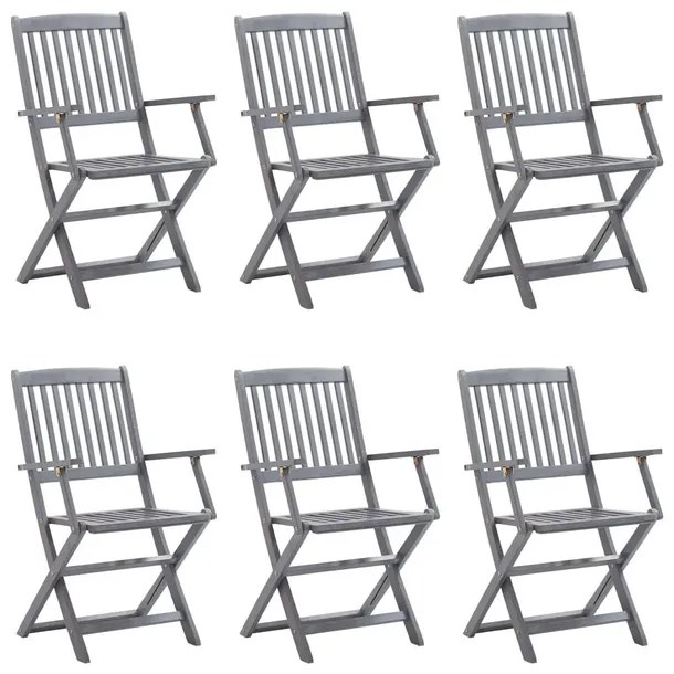 Krzesła stołowe wykonano z litego drewna akacjowego - tropikalnego, twardego drewna - dzięki czemu są odporne na warunki atmosferyczne i trwałe na lata użytkowania. Lite drewno akacjowe jest wytrzymałe na obciążenia oraz upływ czasu. Wykończoną w szarym kolorze powierzchnię można łatwo wyczyścić przy pomocy wilgotnej ściereczki. Krzesła można złożyć, aby zaoszczędzić miejsce, gdy nie są używane. Co więcej dołączone poduszki oferują większy komfort podczas wypoczynku lub posiłku. Każda poduszka zawiera dwa zestawy sznurków, które służą do przymocowania jej do krzesła.