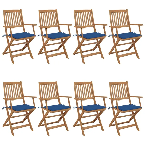 Składane krzesła ogrodowe z poduszkami, 8 szt., drewno akacjowe