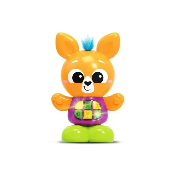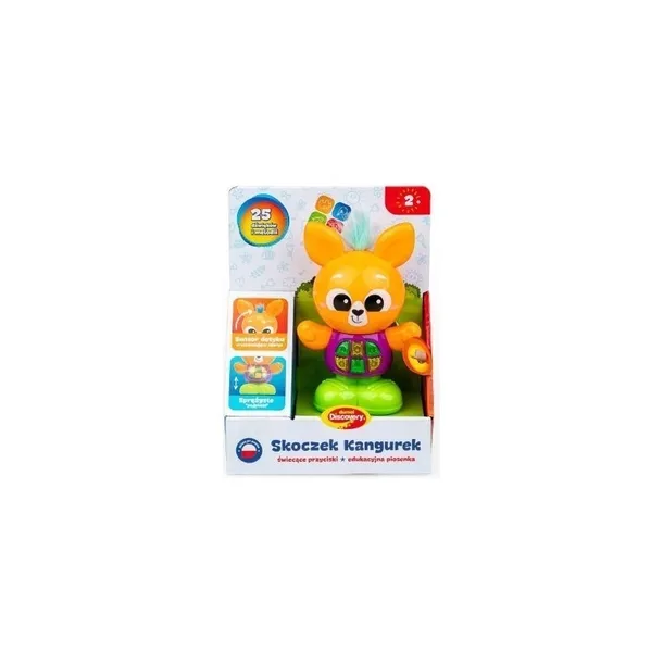 Sprytny kangurek zachęci malucha do wesołej zabawy! Ten słodki zwierzaczek zna aż 25 różnych dźwięków i melodii, w tym nawet edukacyjną piosenkę. Zabawka wypowiada różne wyrażenia w języku polskim. Za uruchamianie poszczególnych funkcji odpowiadają świecące przyciski na brzuszku. Zwierzak posiada sprężyste nóżki, a po przyciśnięciu go, usłyszymy zabawny, sprężynowy odgłos. Na głowie kangurka znajduje się niebieska czuprynka. Gdy dotkniemy jej, aktywujemy wesołe odgłosy.