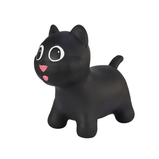 Tootiny Hoppimals - Skoczek Kotek czarny Hoppimals to dmuchane, gumowe zabawki do skakania w kształcie zwierzątek. W kolekcji producenta Tootiny znajdziemy cztery modele:krówkę, konika, kotka i pieska w pięknych pastelowych kolorach. Hoppimals to ponadczasowe nadmuchiwane zabawki do skakania dla dzieci. Każdy maluch uwielbia hycać, hopsać, podskakiwać na swoich malutkich nóżkach. Gumowe zabawki Tootiny zapewniają ogromną i niepowtarzalną frajdę ze skakania. Dzieci kochają Hoppimalsy, które dzięki swojemu designowi stają się też ozdobą pokoiku i często zastępują krzesełko. Nawet najmłodsze dzieci od razu interesują się gumowym zwierzątkiem i chętnie spędzają z nim czas. Na skoczkach świetnie bryka się po domu i ogrodzie. Aby wesoło podskakiwać wystarczy usiąść na nadmuchane zwierzątko, złapać za uszy i ruszyć w podskokach do przodu. Miękkie gumowe uszy są ??łatwe do chwytania dla malutkich dłoni. Tootiny Hoppimals są wykonane z wysokiej jakości gumy i działają jak piłka gimnastyczna, pozytywnie wpływając na rozwój psychofizyczny dziecka, rozwijając zmysł równowagi, poprawiając sylwetkę, wzmacniając kręgosłup i koordynację rąk i nóg. Dzięki Skoczkom zapewnisz dziecku wyjątkowy sposób na wielogodzinną zabawę, wypełnioną aktywnością fizyczną i masą radości. Skoczek przeznaczony jest dla dzieci powyżej 1 roku życia. Dzieci, które nie potrafią jeszcze skakać do przodu lub nie sięgają nóżkami do podłogi powinny bawić się pod nadzorem osoby dorosłej. Tootiny Hoppimals zapakowane są w estetyczne prezentowe pudełko, które idealnie nadaje się jako prezent. Do zestawu dołączona jest pompka i zatyczka, co pozwala na wypuszczenie powietrza i napompowanie skoczka w dowolnej chwili. Dzięki temu zabawkę można zabrać wszędzie ze sobą. Wymiary: Długość: ok. 50 cm Wysokość: ok. 45 cm Szerokość: ok. 25 cm W zestawie: Skoczek Pompka Zatyczka Pudełko Jakość kontrolowana jest na każdym etapie produkcji (od materiału po produkt końcowy). Skoczek Tootiny spełnia europejskie normy bezpieczeństwa EN71, nie zawiera materiałów szkodliwych, pomalowany bezpieczną dla dzieci farbą. Zabawkę można czyścić wodą, bez użycia detergentów. Hoppimals Skoczek to idealny pomysł dla malucha już na roczek! Sprawdzony prezent dla dziecka na każdą okazję!