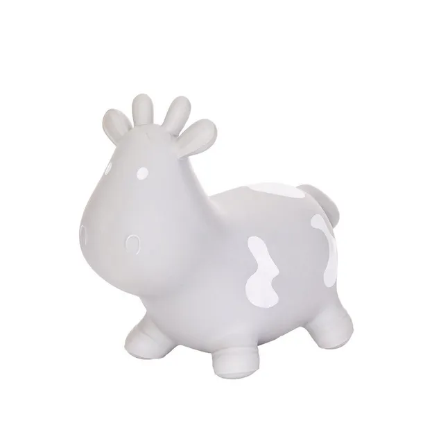 Tootiny Hoppimals - Skoczek Krówka szara Hoppimals to dmuchane, gumowe zabawki do skakania w kształcie zwierzątek. W kolekcji producenta Tootiny znajdziemy cztery modele:krówkę, konika, kotka i pieska w pięknych pastelowych kolorach. Hoppimals to ponadczasowe nadmuchiwane zabawki do skakania dla dzieci. Każdy maluch uwielbia hycać, hopsać, podskakiwać na swoich malutkich nóżkach. Gumowe zabawki Tootiny zapewniają ogromną i niepowtarzalną frajdę ze skakania. Dzieci kochają Hoppimalsy, które dzięki swojemu designowi stają się też ozdobą pokoiku i często zastępują krzesełko. Nawet najmłodsze dzieci od razu interesują się gumowym zwierzątkiem i chętnie spędzają z nim czas. Na skoczkach świetnie bryka się po domu i ogrodzie. Aby wesoło podskakiwać wystarczy usiąść na nadmuchane zwierzątko, złapać za uszy i ruszyć w podskokach do przodu. Miękkie gumowe uszy są ??łatwe do chwytania dla malutkich dłoni. Tootiny Hoppimals są wykonane z wysokiej jakości gumy i działają jak piłka gimnastyczna, pozytywnie wpływając na rozwój psychofizyczny dziecka, rozwijając zmysł równowagi, poprawiając sylwetkę, wzmacniając kręgosłup i koordynację rąk i nóg. Dzięki Skoczkom zapewnisz dziecku wyjątkowy sposób na wielogodzinną zabawę, wypełnioną aktywnością fizyczną i masą radości. Skoczek przeznaczony jest dla dzieci powyżej 1 roku życia. Dzieci, które nie potrafią jeszcze skakać do przodu lub nie sięgają nóżkami do podłogi powinny bawić się pod nadzorem osoby dorosłej. Tootiny Hoppimals zapakowane są w estetyczne prezentowe pudełko, które idealnie nadaje się jako prezent. Do zestawu dołączona jest pompka i zatyczka, co pozwala na wypuszczenie powietrza i napompowanie skoczka w dowolnej chwili. Dzięki temu zabawkę można zabrać wszędzie ze sobą. Wymiary: Długość: ok. 50 cm Wysokość: ok. 45 cm Szerokość: ok. 25 cm W zestawie: Skoczek Pompka Zatyczka Pudełko Jakość kontrolowana jest na każdym etapie produkcji (od materiału po produkt końcowy). Skoczek Tootiny spełnia europejskie normy bezpieczeństwa EN71, nie zawiera materiałów szkodliwych, pomalowany bezpieczną dla dzieci farbą. Zabawkę można czyścić wodą, bez użycia detergentów. Hoppimals Skoczek to idealny pomysł dla malucha już na roczek! Sprawdzony prezent dla dziecka na każdą okazję!
