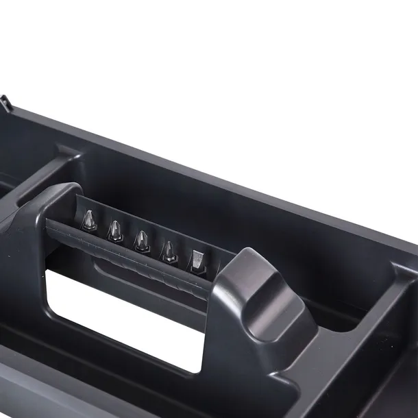 - Dodatkową zaletą jest wygodna rękojeść ułatwiająca transport skrzynki, a także boczne uchwyty zapewniające prostsze manewrowanie sprzętem.