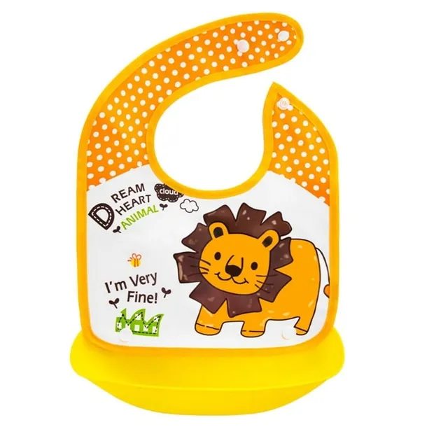 Śliniaczek wykonany z nieprzemakalnej ceratki EVA, doskonale chroni przed zabrudzeniem w czasie karmienia. Posiadają odpinaną kieszonkę zapobiegającą spadaniu większych kawałków pokarmu. Niezwykle łatwy w utrzymaniu czystości - nie wymaga prania, wystarczy przemyć mokrą ściereczką lub ciepłą wodą. Regulowane zapięcie na zatrzask. Doskonały w domu i podczas podróży. Rozmiar odpowiedni już od 6 miesiąca życia.