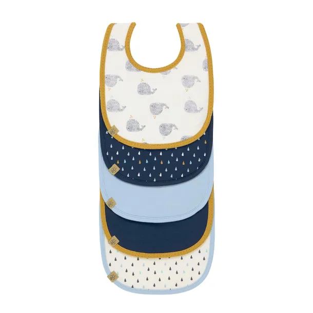 LÄSSIG Zestaw śliniaków dla niemowląt (5 szt.) z rzepem, bawełna, wodoodporne/Pakiet wartościowy Śliniak Mała Wodna Wieloryb