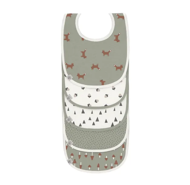 LÄSSIG Zestaw śliniaków dla niemowląt (5 szt.) z rzepem, bawełna, wodoodporne/Pakiet wartościowy Śliniak Mały Leśny Lis