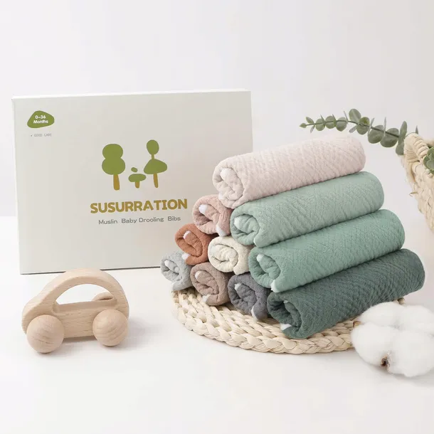 Susurration Lätzchen Baby Dreieckstuch Baby Musselin Halstuch Baby dla chłopca i dziewczynki, Halstuch Sabberlätzchen Baby Regulowane 10 sztuk (SzaroZielony)
