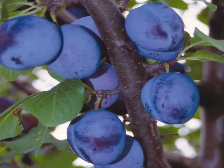 Owoce: Średniej wielkości lub duże (ok. 40 g). Skórka ciemnogranatowa, pokryta obfitym jasnoniebieskim nalotem. Owoce pięknie wybarwiają się zanim jeszcze osiągną pełną dojrzałość. Miąższ zielonożółty, dość jędrny, soczysty, smaczny.
