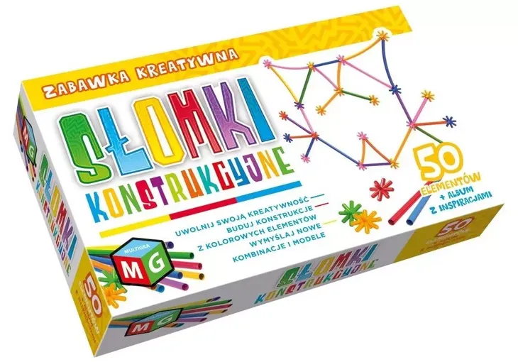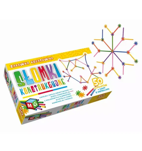 Stwórz niesamowite kreacje z zestawem Słomek konstrukcyjnych! Wykaż się umiejętnościami manualnymi oraz nieograniczoną wyobraźnią. W opakowaniu znajdują się kolorowe rurki o różnych długościach oraz złączki, za pomocą których zrealizujesz swoje wspaniałe pomysły i zbudujesz rozmaite konstrukcje. Słomki konstrukcyjne doskonalą zdolności manualne, koncentracji, motoryki małej, koordynacji wzrokowo-ruchowej, myślenia przestrzennego oraz poszerzają horyzonty wyobraźni. Zawartość opakowania: • kolorowe rurki w dwóch rozmiarach– 30 sztuk, • złączki – 20 sztuk, • album z inspiracjami. Wymiary opakowania: 54.0 x 26.5 x 17.5