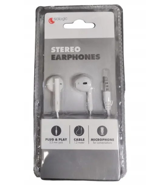 Kolor biały.Przewodowe.Jack 3,5mm.Długość kabla 1,2m.Z mikrofonem.Stan nowy.