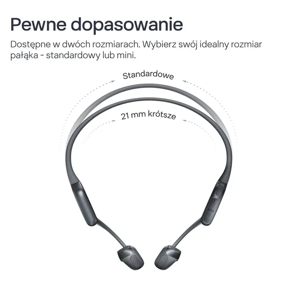 Otwarta konstrukcja słuchawek pozwala Ci jednocześnie słuchać muzyki i pozostawać świadomym otoczenia. Ergonomiczne zaczepy i pałąk dają idealne dopasowanie, dzięki czemu możesz cieszyć się ulubioną muzyką bez przerw, nawet podczas intensywnego ruchu.