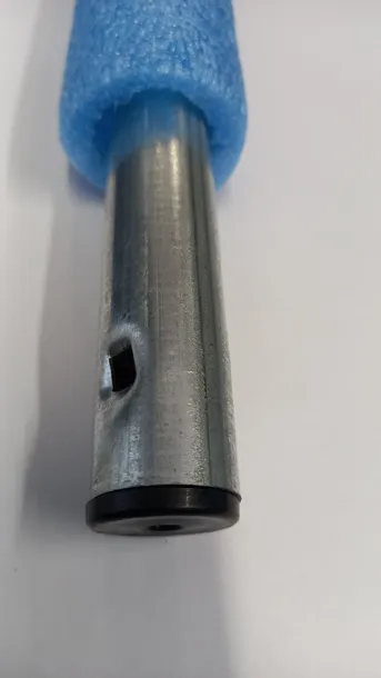 Do słupka dolnego w zestawie znajduje się niebieska pianka oraz grzybek do trampoliny z siatką zewnętrzną.