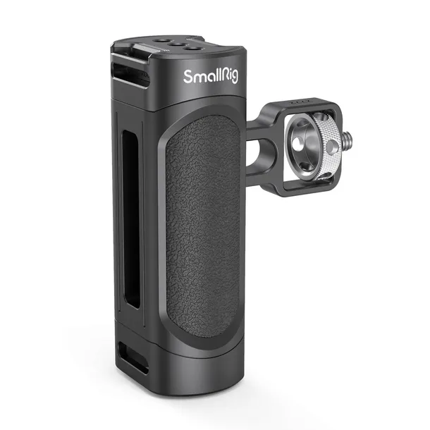 Jest kompatybilny z mobilnymi klatkami SmallRig Pro, takimi jak 2775, 2776 itp., Uniwersalnymi klatkami SmallRig, takimi jak CPU2391B, 2791 i tak dalej. Za pomocą wbudowanego klucza można regulować wysokość rączki, a także dokręcać śrubę blokującą. Posiada trzy standardowe otwory gwintowane 1/4-20 na górze do mocowania akcesoriów. Uchwyt jest kompatybilny z paskiem na rękę SmallRig PAC2456, co zapewnia bezpieczniejsze i stabilniejsze filmowanie z ręki. Waży tylko 120g i jest wyposażony w antypoślizgowe gumowe podkładki na powierzchni, aby zapewnić wygodny chwyt przez długi czas.