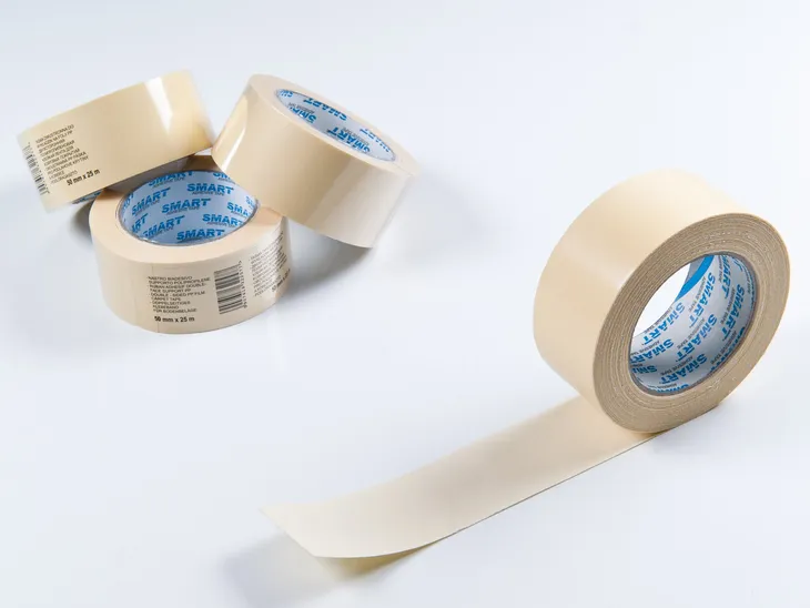 Taśma PP dwustronnie klejąca, o orientacji dwukierunkowej z białym syntetycznym klejem kauczukowym i podwójnie silikonowaną okleiną papierową (żółtą / brązową / białą)