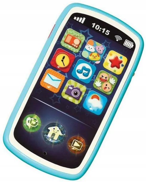 To kolorowa zabawka wyglądająca zupełnie jak prawdziwy smartfon !Bardzo realistyczny wygląd i sposób zabawy sprawiają, że jest idealna dla nowoczesnego maluszka. Świetna zabawa dla każdego smartfoniku na twym ekranie jest zabaw bez liku!Telefonik posiada dotykowy ekranik reagujący na dotyk małych paluszków. Jak w prawdziwym smarcie na wyświetlaczu znajdują się ikonki-przyciski przedstawiające różne symbole. Każda interakcja dziecka wywołuje reakcję urządzenia, odpowiada ono: dźwiękami, melodyjkami, świecącymi przyciskami. Posiada funkcję nagrywania głosu i możliwość późniejszego odtworzenia treś zyskuje Twoje dziecko?-Słuchając wesołych melodyjek, rozwinie zmysł słuchu.-Rozwinie zmysł dotyku.-Usłyszy własny głos po nagraniu i odtworzeniu.-Będzie się znakomicie bawiło.Co potrafi smartfon?-Ma dotykowy ekran.-Funkcja nagrywania głosu z odtworzeniem.-Wesołe melodie i dźwięki.-Świecące przyciski.-Ikony z z różnymi funkcjami zabawami.