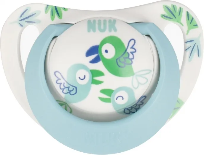 Niestety, niemowlęta nie mogą wyjaśnić, dlaczego kochają swój NUK Star tak bardzo. Ale podejrzewamy, że przyczyną jest miłe uczucie w buzi - górna część smoczka dopasowuje się delikatnie do podniebienia. Znajduje się tam miękka strefa, materiał smoczka jest bardzo cienki i wyjątkowo gładki. Jednocześnie dolna część smoczka pozostawia wystarczająco dużo miejsca dla naturalnych ruchów ssących. Ponieważ gumka smoczka jest wąska i spłaszczona, prawie nie ma nacisku na zęby oraz szczękę. W zestawie znajduje się wytrzymałe pudełko wielokrotnego użytku do bezpiecznego i czystego przechowywania. Występuje w biało-turkusowym kolorze. Opakowanie zawiera 1 sz. silikonowego smoczka od 18-36m wraz z pudełkiem. Wymiary/waga: wymiary opakowania dł. x wys. x gł. cm : 6x11x5, waga produktu w opakowaniu kg : 0,02 kg. Produkt przeznaczony dla dzieci w wieku: 18-36m. Pakowany w pudełeczko z zawieszką. Wyprodukowano w Niemczech.