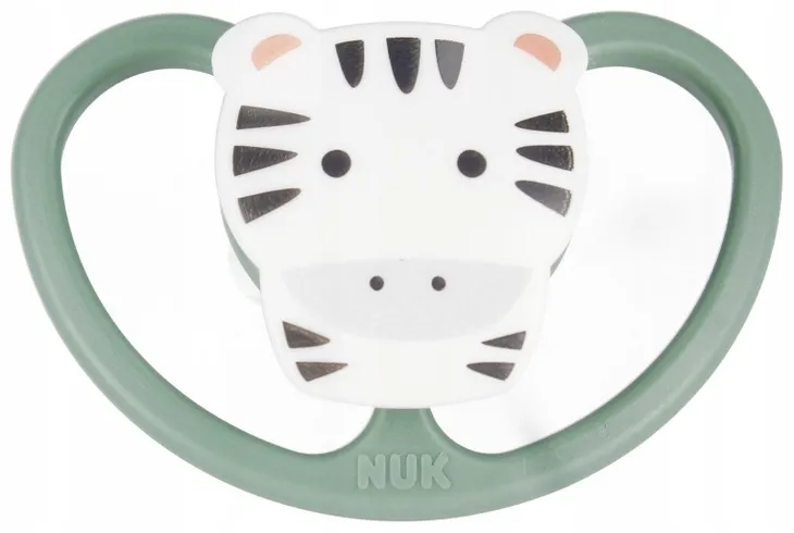 Smoczek uspokajający posiada ulepszony anatomiczny kształt wzorowany na kształcie brodawki sutkowej matki w czasie karmienia piersią, optymalnie dostosowuje się do jamy ustnej dziecka w czasie ssania. Bardziej spłaszczona i gładka od spodu gumka to przyjemne odczucie w buzi i więcej miejsca dla naturalnych ruchów ssących. Duże otwory wentylacyjne zapewniają jeszcze lepszą cyrkulację powietrza, pozwalają delikatnej skórze dziecka oddychać bardziej efektywnie, idealny dla wrażliwej skóry dziecka. Cieńsza i węższa szyjka smoczka zmniejsza nacisk na szczękę i zęby. W zestawie znajduje się wytrzymałe pudełko wielokrotnego użytku do bezpiecznego i czystego przechowywania. Unikalny wzór z Tygrysem. Opakowanie zawiera silikonowy smoczek od 6-18m wraz z pudełkiem. Wymiary/waga: wymiary opakowania dł. x wys. x gł. cm : 6x12x5, waga produktu w opakowaniu kg : 0,02 kg. Produkt przeznaczony dla dzieci w wieku: 6-18m. Pakowany w pudełeczko z zawieszką. Wyprodukowano w Niemczech.