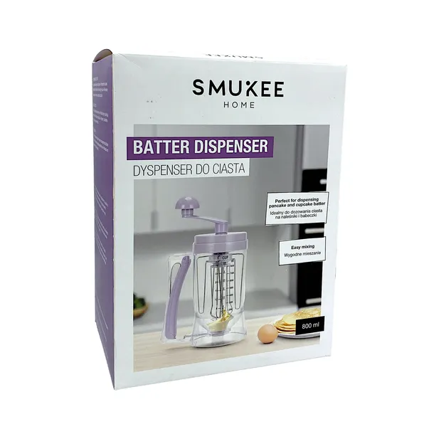 Praktyczny dyspenser do ciasta Smukee to wygodne akcesorium kuchenne, które ułatwia przygotowywanie naleśników, gofrów, pancakes czy babeczek. Dzięki specjalnemu mechanizmowi dozowania pozwala nalewać ciasto precyzyjnie i bez rozlewania, co pomaga utrzymać porządek podczas gotowania.