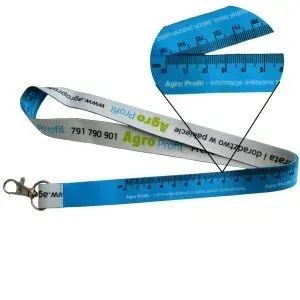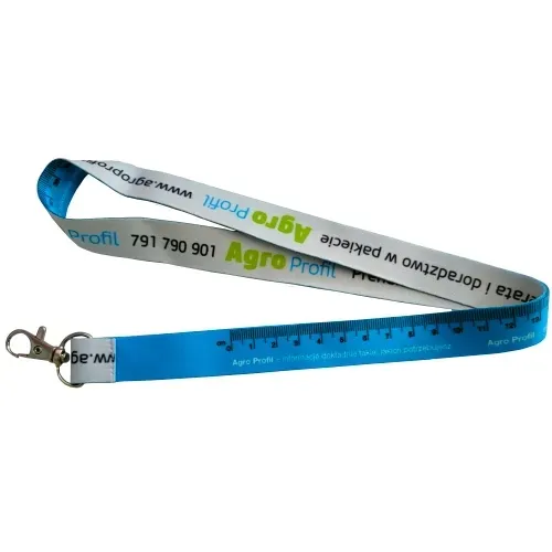 sublimacyjna z wysokiej jakości metalowym karabińczykiem. Smycz do kluczy czy dokumentów o szerokości 2 cm i długości 47 cm. Z kolorowym dwustronnym nadrukiem. Posiada miarkę o długości 75 cm, dzięki której zawsze można szybko zmierzyć to co trzeba. Idealny gadżet dla każdego.