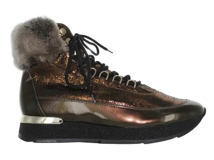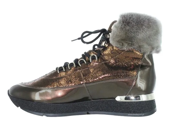 Bardzo wygodne i eleganckie ocieplane śniegowce renomowanej austryjackiej firmy HÖGL. Cholewka wykonana jest ze skóry lakierowanej w kolorze brązowym. Buty zdobione eleganckim futerkiem. Buty sznurowane. Wnętrze ocieplane wykonane z wełny jagnięcej. Wkładka wyjmowana wykonana z materiału. Podeszwa wykonana jest z tworzywa wysokogatunkowego o grubości ok. 3 cm. Kolekcja Jesień/Zima 2018