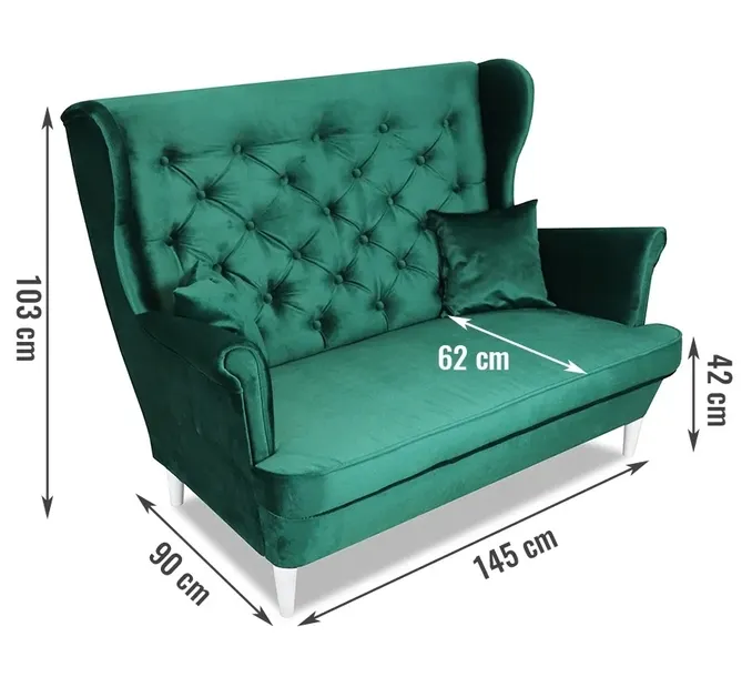 Sofa uszak KORFU to wygodne rozwiązanie do dużych salonów, ale również do mniejszych pokoi dziennych. Przyjemna w dotyku tkanina w różnych kolorach do wyboru zachęca do skorzystania. Jeśli chcesz udekorować swój dom w stylu skandynawskim – sofa KORFU jest specjalnie dla Ciebie! Przyjemna tkanina o aksamitnym wykończeniu otula Cię swoją miękkością, kiedy zasiądziesz na sofie. Eleganckie pikowane oparcie pasuje do stylu nowoczesnego, a lekkości dodają drewniane, wysokie nóżki. Stabilny i solidny stelaż bukowy w połączeniu ze sprężynami falistymi daje gwarancję wytrzymałości na długie lata.