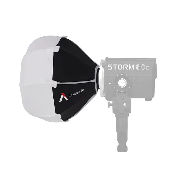Aputure Lantern 30. Kolor produktu: Czarny, Obsługiwane produkty: STORM 80c. Średnica: 30 cm, Wysokość produktu: 390 mm, Waga produktu: 340 g. Ilość na paczkę: 1 szt.