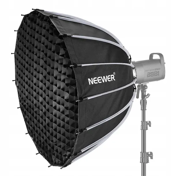 Softbox Neewer wyposażony jest w grid o strukturze plastra miodu, który skupia światło pod kątem 45°, pozwalając na uzyskanie dramatycznych efektów oświetleniowych, doskonale podkreślających strukturę twarzy modela. W zestawie znajdują się również dwa wysokiej jakości dyfuzory, które można dowolnie łączyć, aby uzyskać pożądany efekt świetlny.