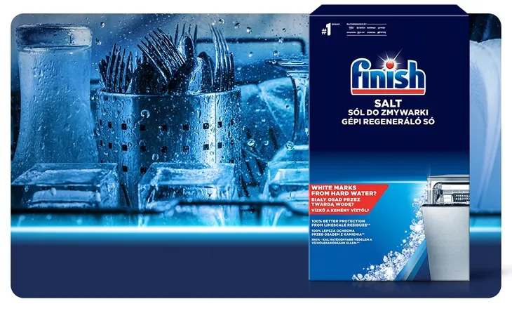 - Rekomendacja producentów – sól FINISH jest polecana przez czołowych producentów zmywarek.