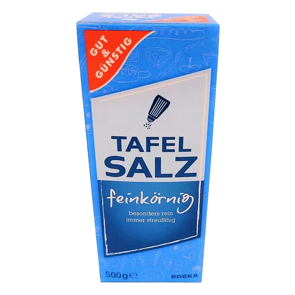 Gut & Gunstig Tafel Salz to niemiecka sól kuchenna. Wysokojakościowy produkt niemiecki świetnie sprawdzi się w naszej kuchni.