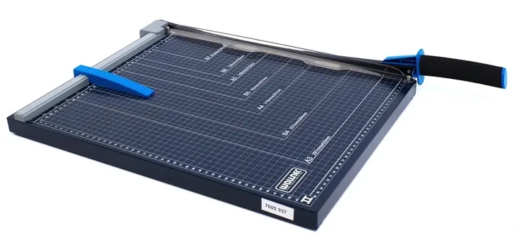 Bez problemu tnie do nawet 10 kartek jednocześnie. Radzi sobie z przycinaniem arkuszy zarówno formatu A3 jak i A4.