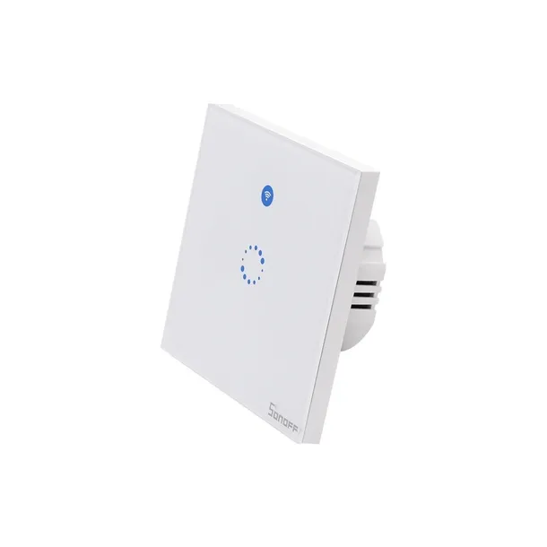 Sonoff T1 Touch to 1-kanałowy dotykowy włącznik światłą z łącznością WiFi oraz RF (433,92 MHz). Sterowanie odbywa się za pomocą przejrzystej aplikacji eWeLink dostępnej na platformy Android i iOS. Urządzenie jest kompatybilne z Amazon Alexa, Google Assistant, IFTTT, Google Nest.
