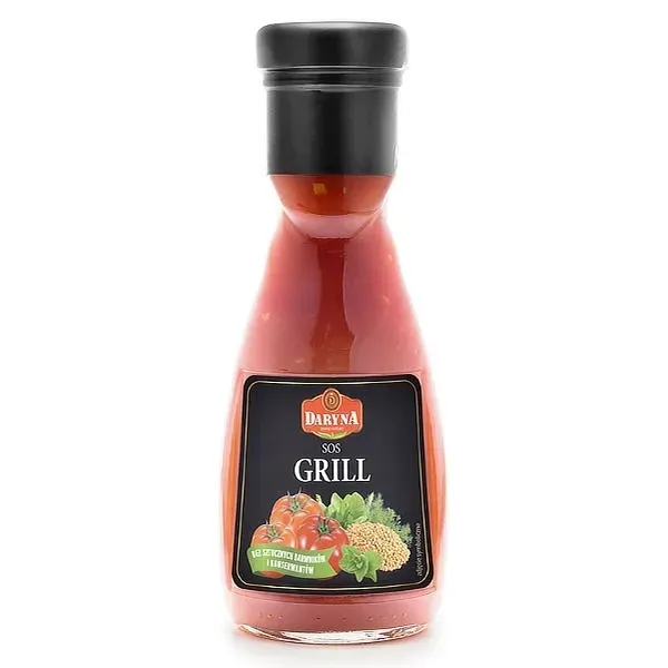 Sos Grill marki Daryna powstaje na bazie pasty pomidorowej, a pełni smaku nadają mu przyprawy, takie jak ziarenka gorczycy, koper i pietruszka. Sos ma przyjemny słodko-kwaśny smak i świetnie komponuje się zarówno z mięsem, jak i warzywami. Daryna to idealna propozycja dla tych, którzy pragną podkreślić smak tradycyjnych potraw i nadać im pikantną nutę. Sos Grill okaże się niezastąpiony w sezonie grillowym. Polecany do potraw przyrządzanych na ruszcie. Szczególnie dobrze komponuje się z karkówką, szaszłykami i bakłażanem.