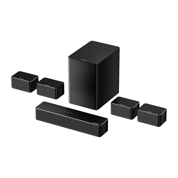 Ultimea Poseidon D70 to soundbar zaprojektowany z myślą o pełnym, przestrzennym doświadczeniu dźwięku w domowym salonie. System 7.1 kanałów o mocy 410 W tworzy realistyczną scenę dźwiękową, która otoczy Cię z każdej strony – z przodu, z tyłu oraz po bokach. To rozwiązanie, które wyraźnie wyróżnia się na tle klasycznych soundbarów 2.0, oferując znacznie szersze pole dźwięku i wyższą czytelność dialogów, efektów oraz muzyki. Zastosowanie aż czterech głośników sprawia, że dźwięk wypełnia pomieszczenie, a także jest precyzyjnie kierowany z konkretnych stron.