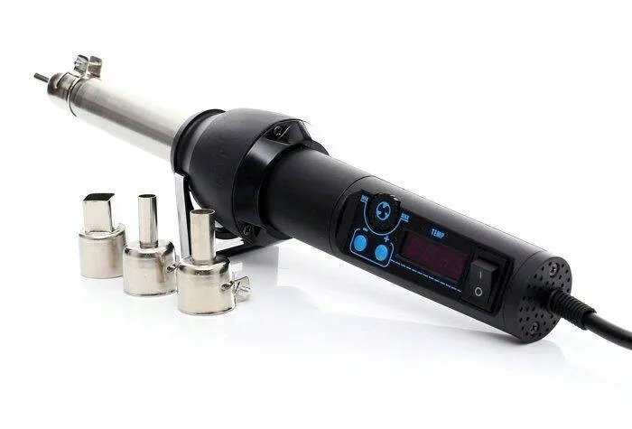 Spawarka do plastiku polskiej marki Kraft&Dele o symbolu KD862. Uniwersalne narzędzie pozwalające lutować elementy plastikowe oraz plandeki. Spawarka posiada funkcję płynnej regulacji temperatury grota, wydmuchiwanego powietrza oraz siły. Wyposażona w wyświetlacz LED. Bardzo mocna i wytrzymała grzałka, rdzeń wykonany z ceramiki.