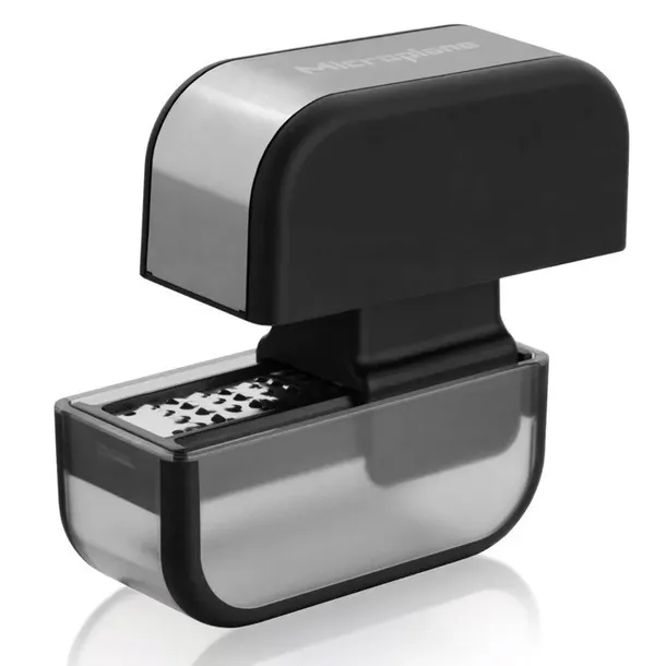 Pomysłowa tarka do czosnku Microplane, to poręczny, kompaktowy i skuteczny gadżet, kuchenny. Tarka ta szybko i sprawnie kroi czosnek na małe, jednolite kawałki zapewniając pełne rozwinięcie się naturalnych olejków i smaków tego warzywa. Obrane ząbki czosnku należy włożyć do pojemniczka, a następnie docisnąć je praską. Prostym ruchem do przodu i do tyłu czosnek ścierany jest bezpośrednio do przezroczystego pojemnika. Dzięki małemu skrobakowi, który znajduje się wewnątrz pokrywki, można sprawnie przełożyć czosnek go do naczynia czy na talerz. Minimalny kontakt czosnku z dłońmi skutecznie sprawi, że ręce będą wolne od zapachu.