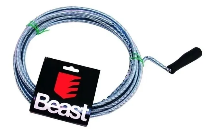 Na końcu sprężyny znajduje się ostra końcówka, którą wprowadzamy do rury kanalizacyjnej, kręcąc jednocześnie korbą. Po udrożnieniu rury wyciągamy sprężynę.