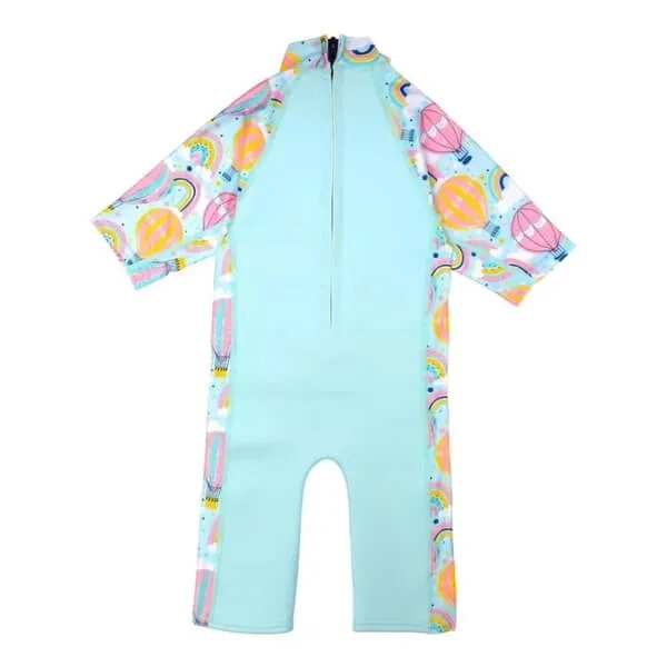 Pianka UV Combie zapewnia ochronę przeciwsłoneczną (neopren całkowicie blokuje dostęp promieni słonecznych, jest to materiał wykorzystywany w piankach do pływania). Elastyczne rękawy z filtrem przeciwsłonecznym SPF 50+ zapewniają swobodę ruchów przy jednoczesnej ochronie podatnych na oparzenia słoneczne ramion i karku dzieci.