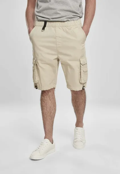 Finally, a pair of shorts with cargo style appearance and a comfortable sweat pants fit. Their comfy fit comes from an elastic waistband, on which a fashionable D-ring is attached. You can do further fine adjustments with drawstrings with stoppers at the cuffs. For stowing your essentials, you will have plenty of storage space at your disposal. Firstly, via the featured side cargo pockets with attached mini pockets, secondly via the flap pockets at the back. Your hands will find a cozy haven inside the additional side pockets.