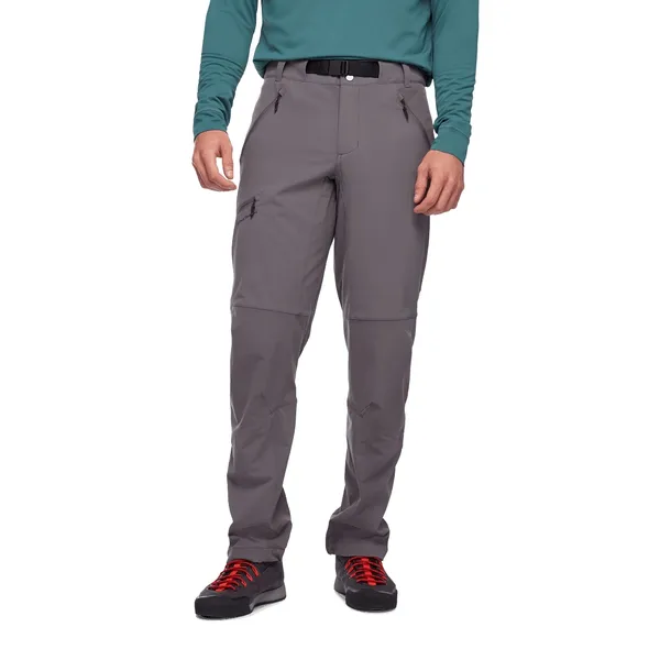 Spodnie Black Diamond Swift Pants zostały wykonane z wytrzymałej tkaniny, która dla lepszego dopasowania jest rozciągliwa w czterech kierunkach. Całość została wykonana z połączenia ze sobą nylonu i elastanu. Pierwsza z tkanin wyróżnia się dobrą odpornością na przypadkowe uszkodzenia. W celu poprawy właściwości spodni mają one wzmocnienia na kolanach i siedzisku. O odpowiedni komfort w trakcie wędrówki zadba wykonanie w kroju Regular, który nie ogranicza ruchów użytkownika. Model ma również możliwość regulacji w talii za pomocą zintegrowanego pasa. Z kolei na dole nogawki odpowiednio przylegają za sprawą elastycznych mankietów, które mają dodatkowo zatrzaski. Spodnie marki Black Diamond mają również liczne kieszenie – dwie po bokach i po jednej na udzie oraz z tyłu. Zostały one zabezpieczone zamkami renomowanej marki YKK.
