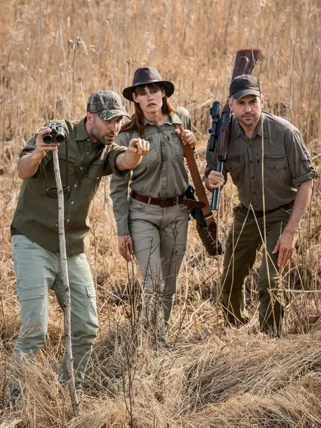 Duża ilość kieszeni - dwie ukośne przy pasku, jedna z tyłu na zamek. Na nogawkach dwie boczne zapinane zamkiem oraz na prawej nakładana dodatkowa kieszonka zamykana magnesem. W pasie z tyłu guma oraz zaszewki na kolanach ułatwiające przyklęk..