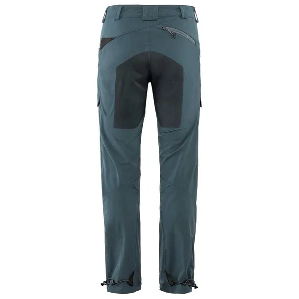 Spodnie posiadają klasyczny, regularny krój, który sprawia, że nie krępują ruchów, a dodatkowo dzięki zastosowaniu elastycznego, stretchowego materiału i odpowiedniej konstrukcji spodni zapewniają pełną swobodę. Czynnikiem sprzyjającym swobodzie poruszania się są profilowane kolana, które ułatwiają wysokie unoszenie kolan w czasie wspinaczki czy w przypadku poruszania się stromym stokiem. Z tłu kieszeń zabezpieczona suwakiem. Klasyczne proste nogawki u dołu pozwalają bez problemu nałożyć je na wysokie buty trekkingowe, ponadto regulacja brzegów za pomocą gumki ze stoperami, a także haczyk umożliwiający zaczepienie o sznurowadła, tak by nogawki nie podsuwały się w przypadku unoszenia kolan. Wzmocnienia na kolanach