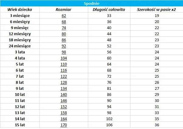 Spodnie szyjemy z wysokiej jakości dzianin, które można prać w 30 stopniach.