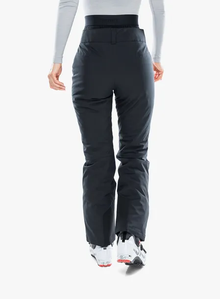 Damskie spodnie narciarskie Ziener Tippa Pants - black to funkcjonalna odzież zaprojektowana dla kobiet, które cenią sobie komfort i ochronę podczas aktywności na stoku. Wykonane w 100% z recyklingowanego poliestru, zapewniają odporność na wilgoć i ekstremalne warunki atmosferyczne. Wysoki, elastyczny wewnętrzny pas dopasowuje się do ciała, zapewniając wygodę i stabilność. Dodatkowym atutem jest syntetyczne ocieplenie o gramaturze 80 g/m2, które dostarcza odpowiednią ilość ciepła w trakcie zimowych aktywności.