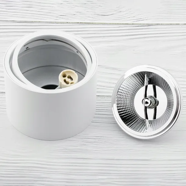 Kompletny zestaw oprawa okrągła ruchoma, natynkowa w kolorze białym typu SPOT o wysokości 10 cm wraz z Żarówką LED GU10.
