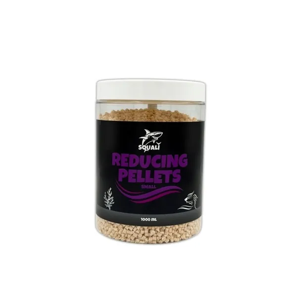 Squali Reducing Pellets to innowacyjne media filtracyjne wykonane z biodegradowalnych polimerów, które dostarczają organicznego węgla. W postaci drobnych granulek, stanowią one doskonałe podłoże dla bakterii, które namnażając się, efektywnie usuwają azotany i fosforany z wody. Nadmiar bakterii jest zjadany przez korale i inne organizmy lub usuwany przez odpieniacz. Najlepiej umieścić wylot filtra z peletkami przed odpieniaczem, aby zwiększyć wymianę gazową, usuwając CO2 i dodając O2.