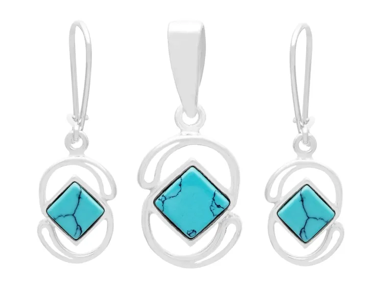 SREBRNY KOMPLET KOLCZYKI+WISIOREK TURKUS ! ! !