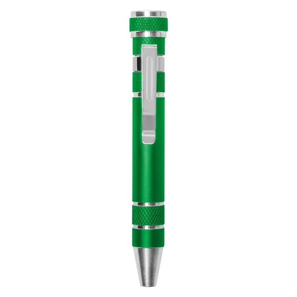 Śrubokręt w kształcie długopisu z 4 płaskimi i 4 krzyżakowymi końcówkami, z klipem