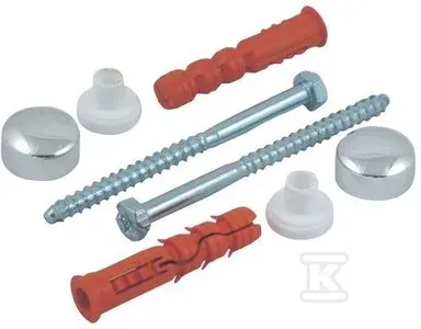 Zestaw służy do mocowania muszli toaletowych. Plastikowe zaślepki maskują miejsca, w których widoczne są zakończenie śrub. Śruby z łbem sześciokątnym wyposażone są w nacięcie krzyżakowe umożliwiające mocowanie bez użycia klucza. Warianty kolorystyczne zaśMateriał kołka: poliamid kołek: NTX 8/40 Materiał śruby: stal galw niklowana śruba: 6/80 kapturek: chrom